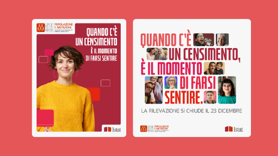 Il concept e il sistema visivo sviluppati per questa campagna sono stati inoltre declinati in modo coerente per tutte le iniziative dei Censimenti Permanenti di ISTAT: Popolazione e abitazioni, Imprese, Istituzioni Non profit, Agricoltura, ecc.